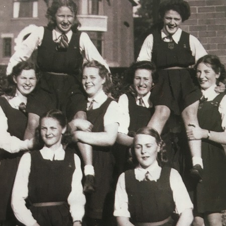 We got up to quite a number. Since the hall was five minutes’ walk away from the school we were left for those few moments totally unsupervised. Possibly it would be illegal now. Fortunately, for us, it was not then. We ran riot – well, some of us did, anyway. We had a group of eight known as The Gang and even became notorious. Outside, in the street, stood a large, high static water tank, ready for use should the normal water supply be put out of action during an air raid. It was full to the brim with scummy water. We were caught one day up on top of it, balancing around the edge, arms outstretched and wobbling horribly. Another day, we were found inside the church itself with one of our number up on the pulpit preaching a sermon. This did not go down too well with Miss Walker, as it was she herself who found us. She had come over to check how our history class was going, only to find that half of us were missing and Miss Scott was struggling on, reading aloud her notes, presumably trying to pretend that she had not noticed her class was depleted.